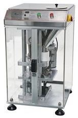 Tablet press machine is used for tablet production in laboratories.